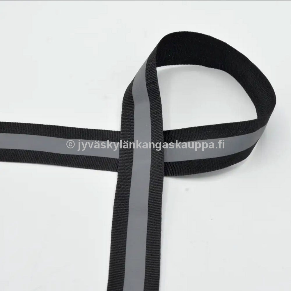 Grossgrain ribbon with reflection, Ripsinauha Heijastinnauhalla 25mm MUSTA
