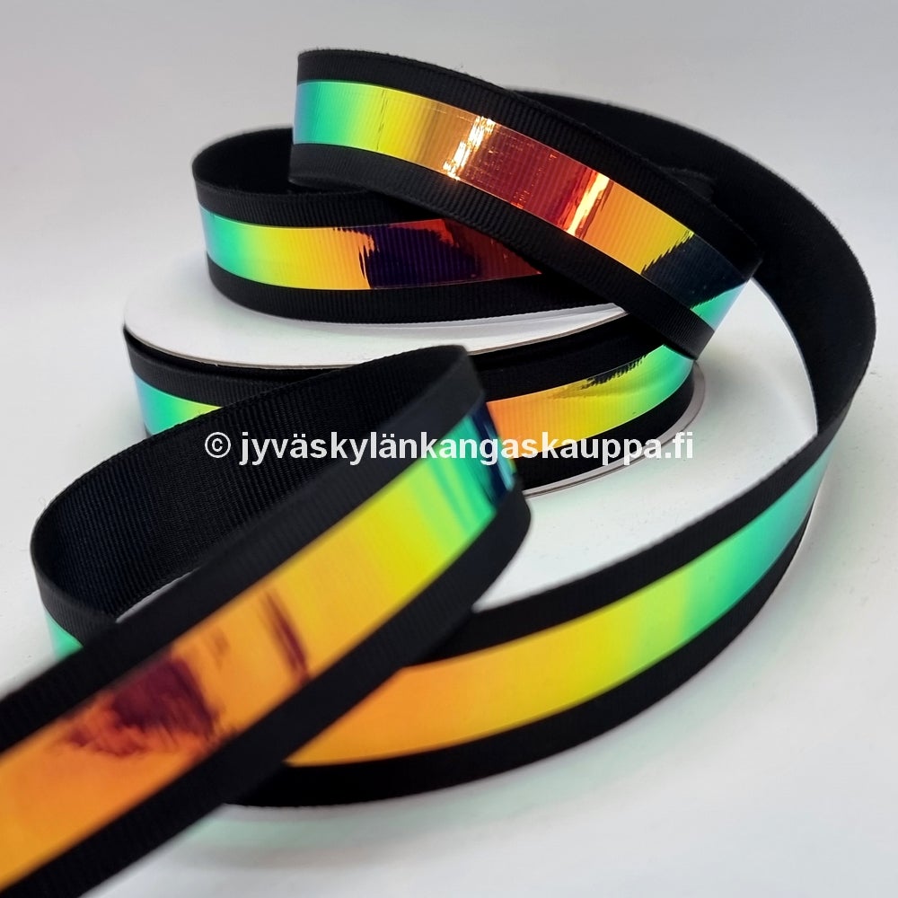 Grossgrain ribbon with foil (ripsinauha foliolla) Musta